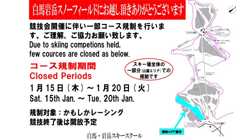 第48回長野県スキー大会週間につき、期間中は山麓エリアの一部コースを規制いたします。