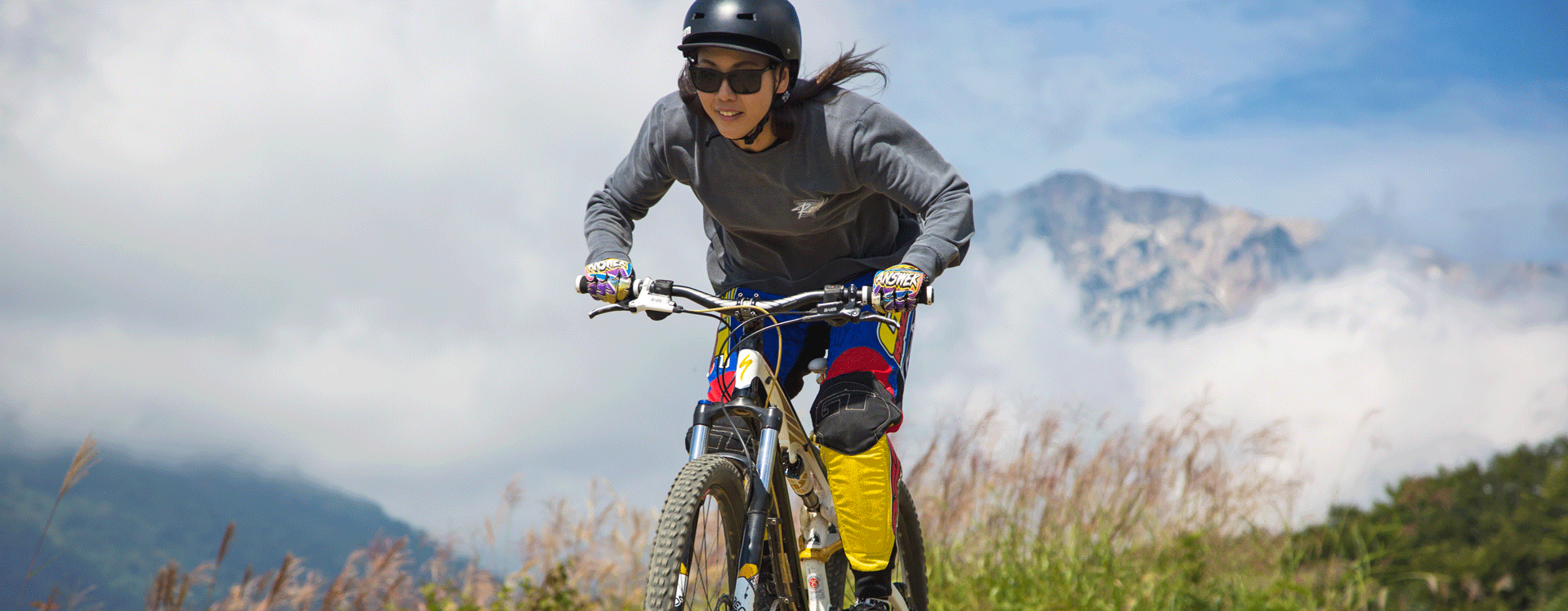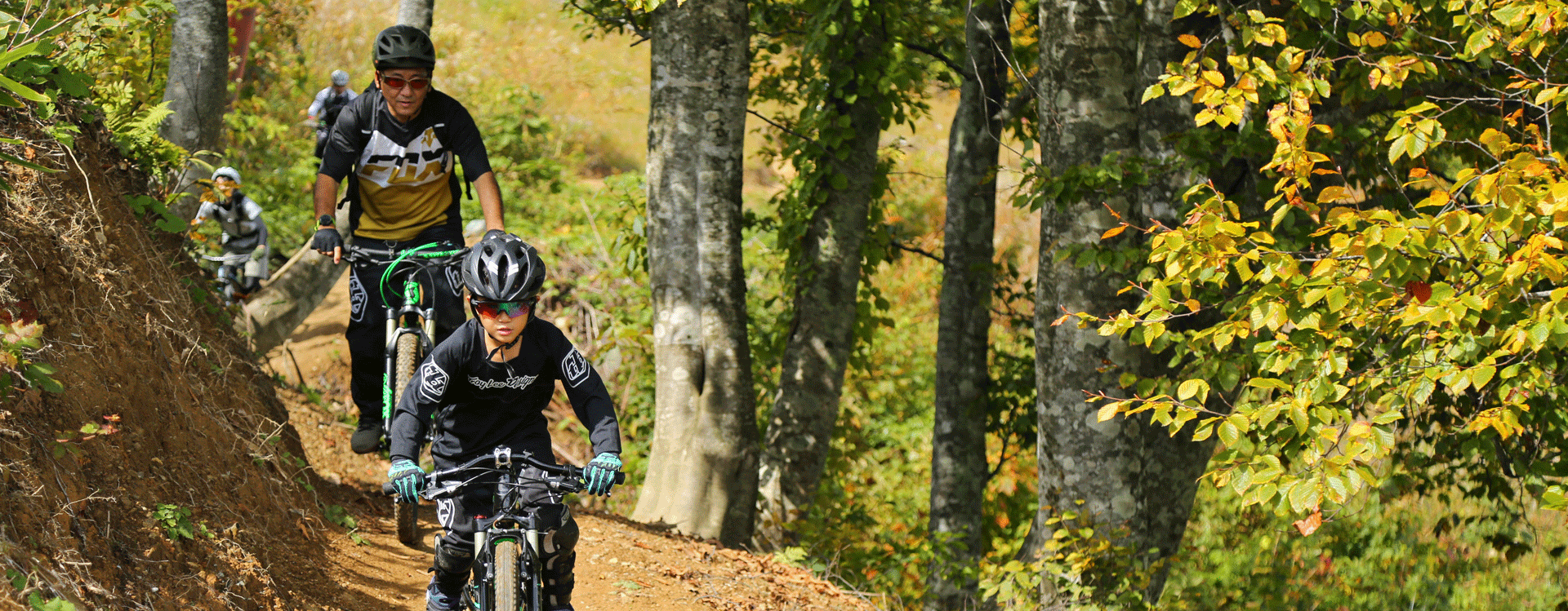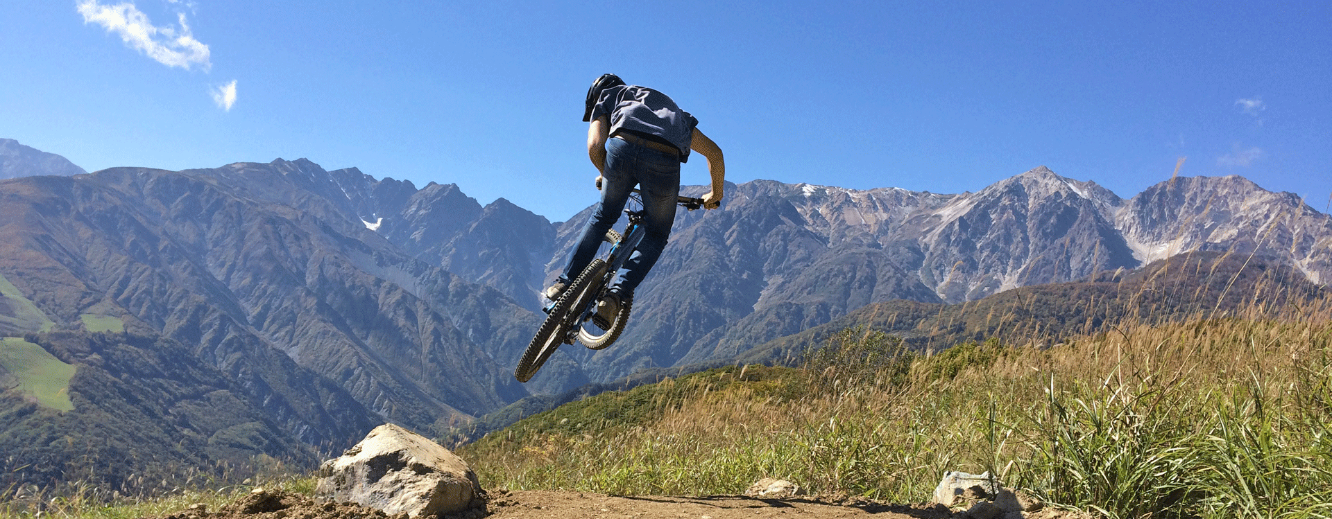 白馬岩岳では身長130㎝以上のお子様から本格MTBを体験して頂けます。また、ガイドツアーに参加されない一般のお客様でもMTBやヘルメットのレンタルをご利用頂け、ガイドツアー参加者はヘルメット、プロテクターの貸し出しも行っています。